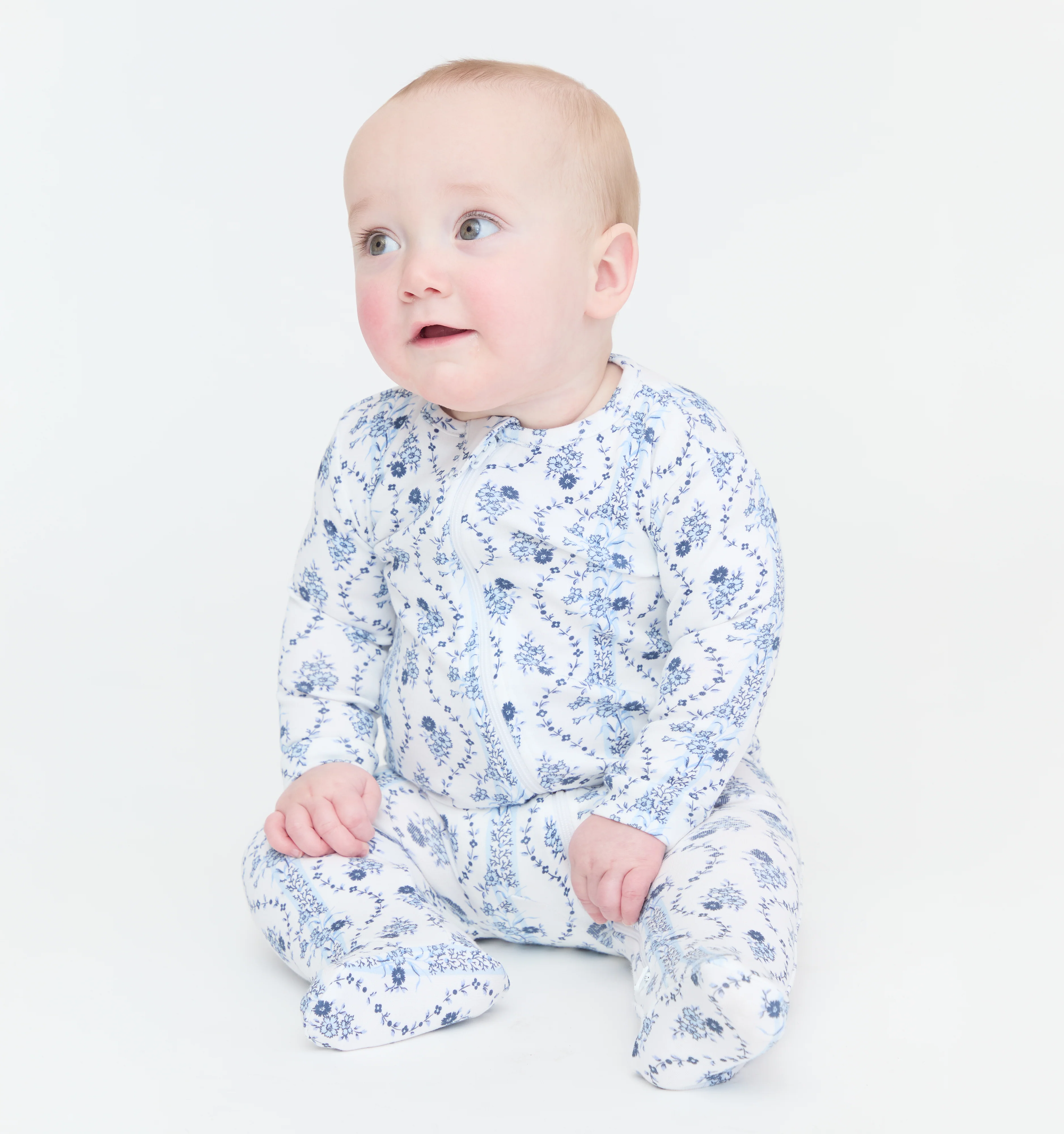 The Footie Pajama - Blue Vine Stripe